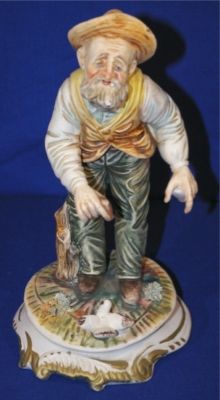 Vtg Capodimonte Old Man with Bird figurine Italy