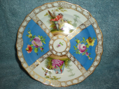 Antique Meissen Hand Painted Porcelain Plate With Courting scenes And Flowers