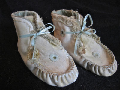 sweet antique baby shoes wh leather w soft soles, ruined silk lining, for doll?