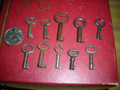 Title (ebay affiliate link): LOT OF 10 SMALL ANTIQUE BARREL SKELETON KEYS, PADLOCK, FURNITURE, CABINET KEY
