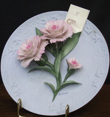 Title (ebay affiliate link): Authentic Italian Capodimonte Collector Plate Pink Carnation Flower Artist Sign