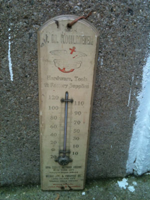 Vintage J.M. Kohlmeier Hardware Wooden Thermometer 15"
