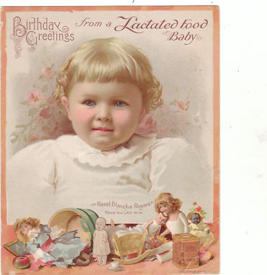 Title (ebay affiliate link): 1893, Hazel Blanche Rogers, Birthday Wish, Lactated Food Victorian Trade Cards