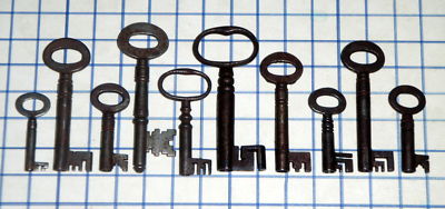 Antique Vintage old Fancy intricate bit skeleton key lot furniture cabinet lock