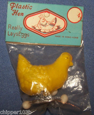 VINTAGE DIME STORE PLASTIC EGG LAYING HEN - 1950'S - NOS