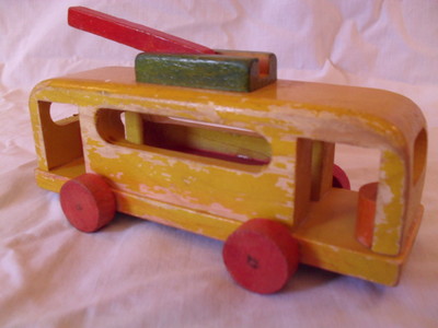 Vintage German Wooden Trolly Pull Toy Circa 1950