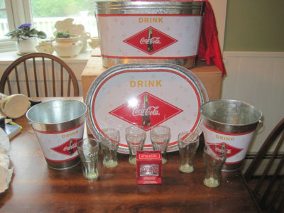 Coca-Cola Party Kit, tray, glasses, buckets opener, ice storage, Unique RARE