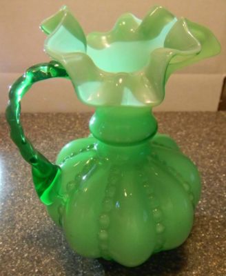 Fenton Creamer Beaded Melon Tiara Line in Apple Green Milk Glass Bulbous Shape