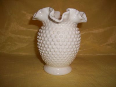 FENTON DOUBLE CRIMPED HOBNAIL VASE 5 1/2" MILK GLASS