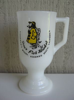 Title (ebay affiliate link): Vtg 60s TONYS FISH MARKET Milk Glass MUG Fire King FISHERMANS WARF Redondo Beach