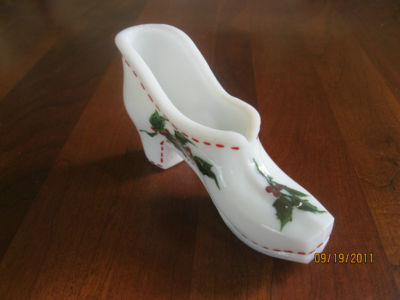Westmoreland Milk Glass Shoe with Holly and Berry Hand Painting with the "WG"