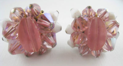Vintage Faceted Pink/Milk Glass Bead Earrings