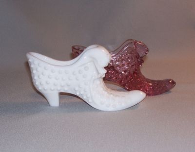 Title (ebay affiliate link): 2 VINTAGE CAT IN A HOBNAIL SHOE 1 WHITE MILK GLASS 1 LIGHT ROSE
