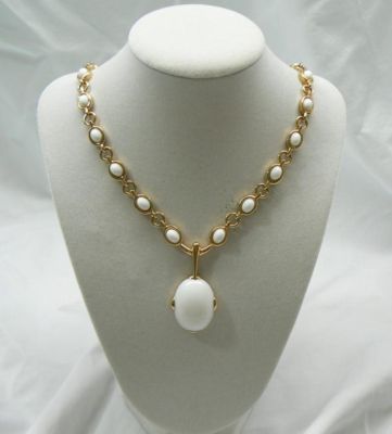 VINTAGE Jomaz MILK GLASS Cabochon GOLDTONE Retro NECKLACE