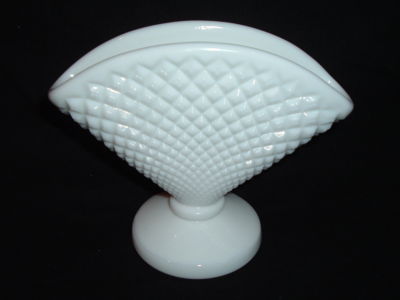 Title (ebay affiliate link): Vintage Fenton? White Milk Glass Fan VASE Hobnail? Diamond? Excellent Condition
