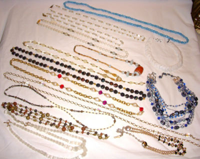 Title (ebay affiliate link): Vintage Glass Borealis Colored Frosted Milk Pearl Chain Japan Necklace Lot