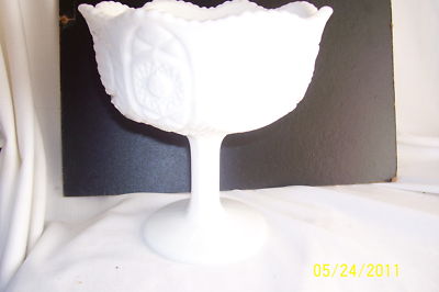 Title (ebay affiliate link): 1.white milk glass pressed pedestal bowl 7 1/2 in.tall 7 in. across top