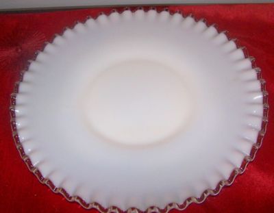 Title (ebay affiliate link): LARGE FENTON SILVER CREST LOW FOOTED CAKE PLATE STAND VINTAGE LARGE MILK GLASS
