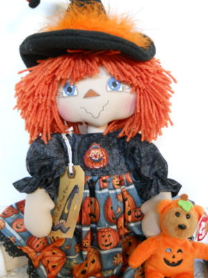 Title (ebay affiliate link): PRIMITIVE HALLOWEEN RAGGEDY WITCH AND TY PUMPKIN BEAR