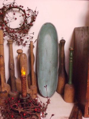 Title (ebay affiliate link): Primitive Blue Wooden Dough Tray ~Wood Trencher Bowl