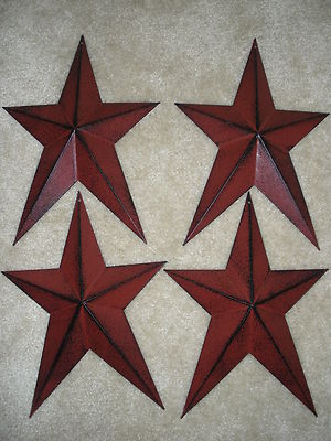 Title (ebay affiliate link): Set of Four (4) Primitive Tin Stars - Red with Black Distressing 12 in tall