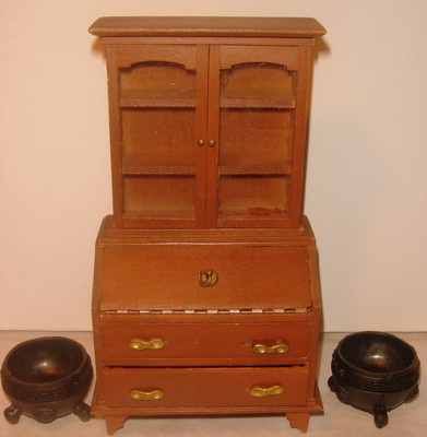 Title (ebay affiliate link): ANTIQUE Droop Leaf Desk glass doors 2 drawers DOLL HOUSE MINIATURE FURNITURE