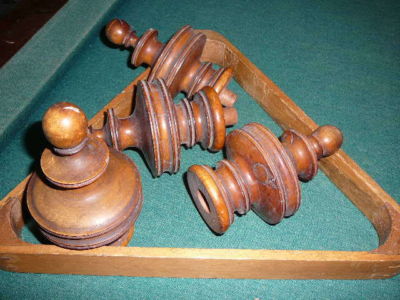 Title (ebay affiliate link): Four large turned wood fineals for antique furniture/clock circa 1800