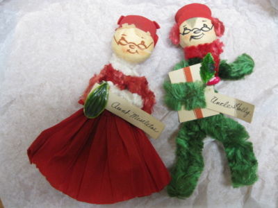 Title (ebay affiliate link): VINTAGE CREPE PAPER CHENILLE FIGURES UNCLE HOLLY AUNT MISTLETOE LARGE
