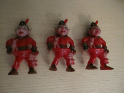3 Vintage Xmas ELF Elves decorations figurines Plasticlike Ornaments Christmas