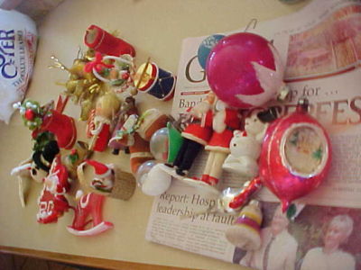 Title (ebay affiliate link): HUGE LOT VINTAGE CHRISTMAS ORNAMENTS GLASS PAPER MACHE HARD PLASTIC BIRDS SANTA
