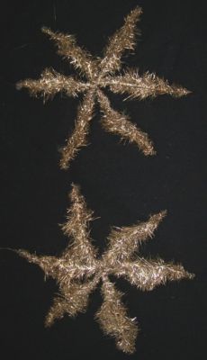 Title (ebay affiliate link): 2 Antique Tinsel Christmas Star Ornaments Wired Tinsel Stars
