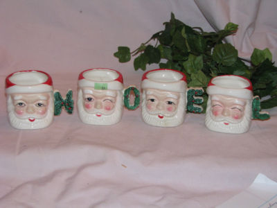 VINTAGE COMMODORE JAPAN CERAMIC SANTA MUGS SPELLS OUT NOEL