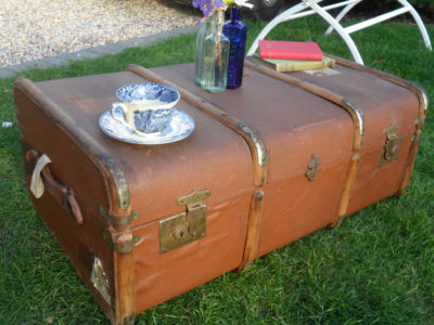 Title (ebay affiliate link): VINTAGE STEAMER TRUNK WITH TRAY, SHABBY CHIC COFFEE TABLE, VINTAGE STORAGE
