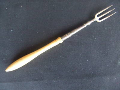 Title (ebay affiliate link): Antique Miniature Fork ? Pickle Silver Plate & Bone