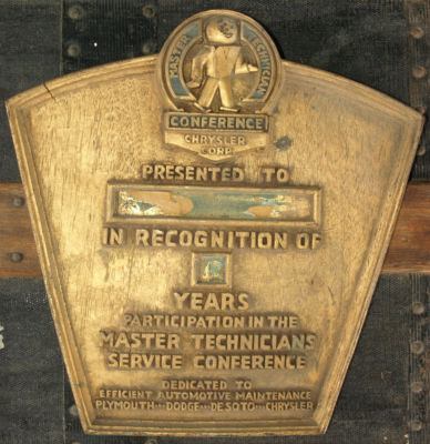 1950's Chrysler Master Tech Award Plaque Dealership Item Dodge Desoto Plymouth