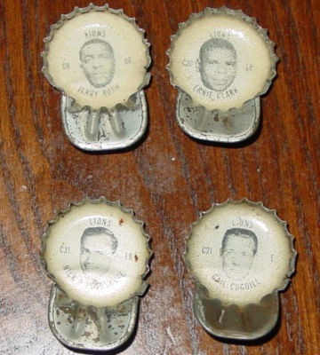 Title (ebay affiliate link): 4 Cogdill Clark Rush Nick P Detroit Lions Coke Coca Cola Bottle Flip Top Cap