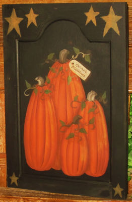 Title (ebay affiliate link): *~*PRIMITIVE*~* HP PUMPKINS ~ HARVEST THYME~ DOOR PANEL