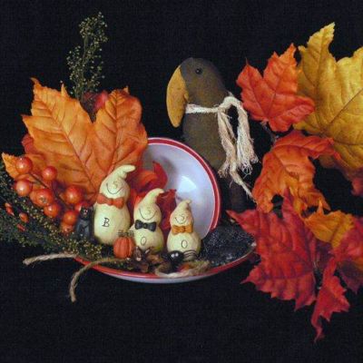 Title (ebay affiliate link): PRIMITIVE DECOR~VINTAGE ENAMELWARE CUP & SAUCER "Ghosts" HALLOWEEN FALL AUTUMN