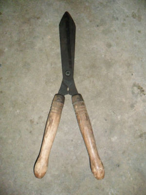 Title (ebay affiliate link): Vintage Wood Handle Hedge Clippers / Old Primitive Yard Tool / Lawn Shears