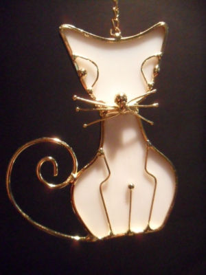 Title (ebay affiliate link): Great White Cut Stained Glass Cat Suncatcher Ornament