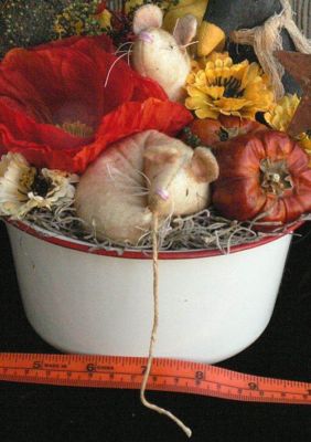 Title (ebay affiliate link): PRIMITIVE VINTAGE ENAMELWARE POT FALL AUTUMN MICE CROW SILK FLOWERS PUMPKINS