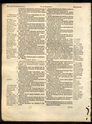 Title (ebay affiliate link): 1580 Geneva Quarto Black Letter Bible Leaf/RARE/ROMANS 14-16!