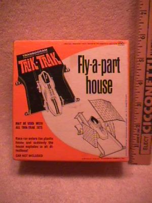 Title (ebay affiliate link): 8358. Transogram Daredevil Trik Trak Fly Apart House w/ Box (1965)