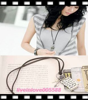 Fashion Women Retro Leather Cord Cross Key Letter Vintage Necklace Chain