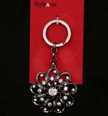Style & Co Antique Vintage Style Hematite Tone Cubic Zirconia Keychain Key Ring