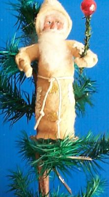 Title (ebay affiliate link): VINTAGE STYLE CLAY FACE COTTON BATTING SANTA CLIP ON ORNAMENT BY VONI