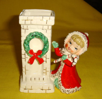 Title (ebay affiliate link): VINTAGE UCAGCO JAPAN CERAMIC CHRISTMAS GIRL FIGURINE SPAGHETTI TRIM