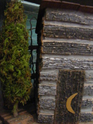 LOG CABIN OUTHOUSE MOON VILLAGE OLD WOOD HANDMADE IN VIRGINIA USA PAT BROYLES