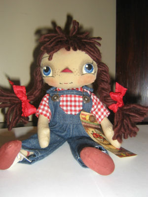 Title (ebay affiliate link): PRIMITIVE RAGGEDY ANN COUNTRY RED CHECK AND OVERALLS DOLL/TAG