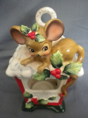 Title (ebay affiliate link): Josef Originals Playful Mouse Christmas Candle Holder with Holly & Snow